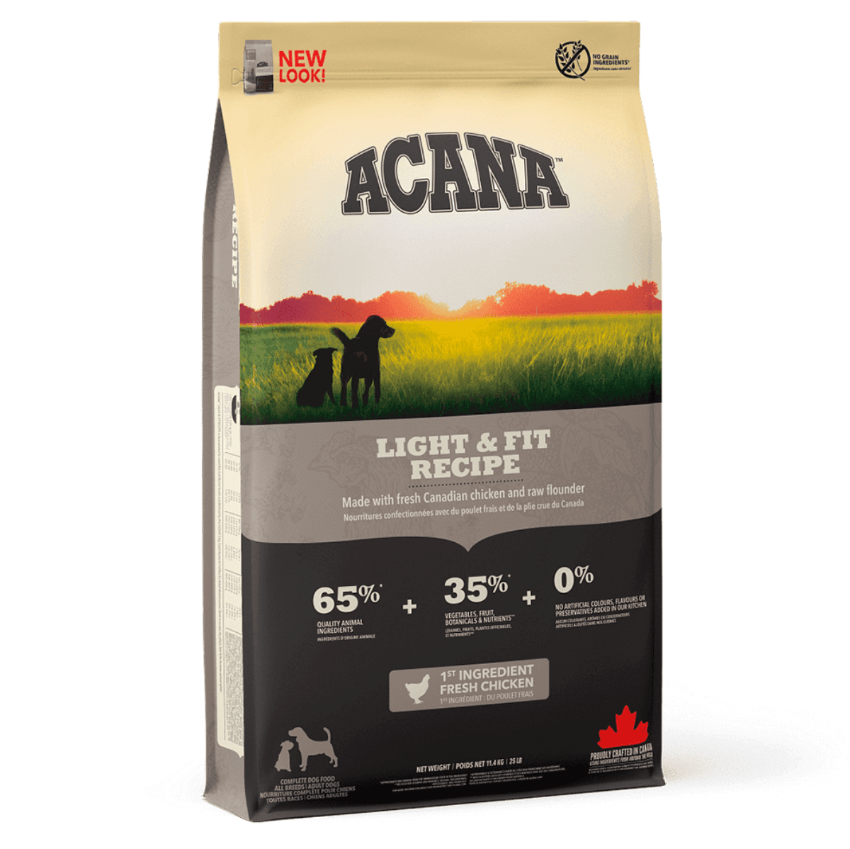 Acana Light & Fit con pollo de corral criado en libertad, pescado y huevos que provienen de las granjas de la región, es un alimento completo, sano y equilibrado con alto contenido proteico y bajo en grasas, indicado especialmente para perros adultos con sobrepeso.