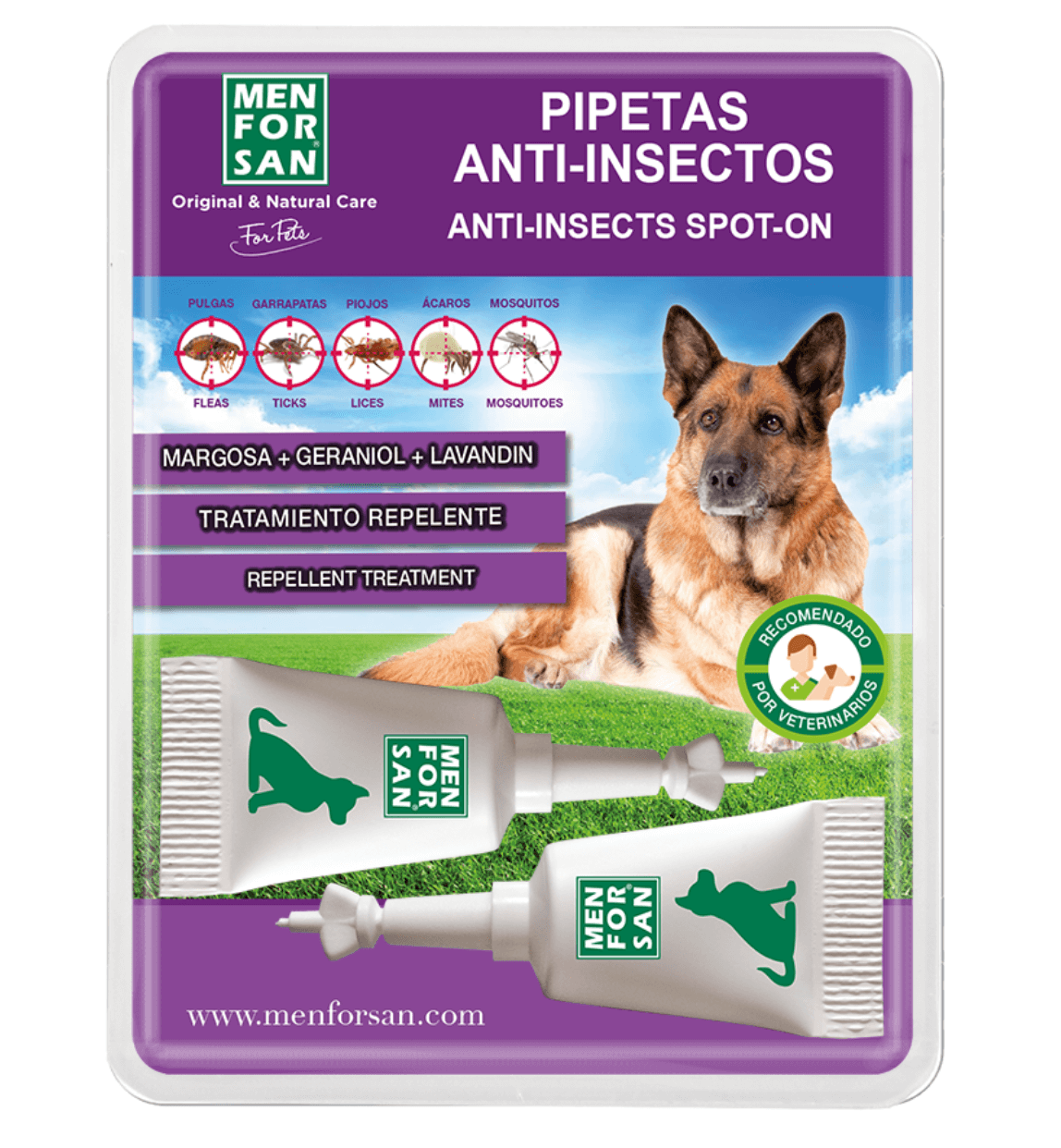 Repelente natural de insectos Menforsan con citronela para perros
