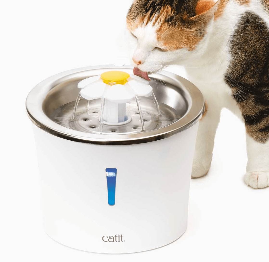 La Flower Fountain de Acero Inoxidable de Catit es una fuente para gatos con parte superior de acero inoxidable de alta calidad